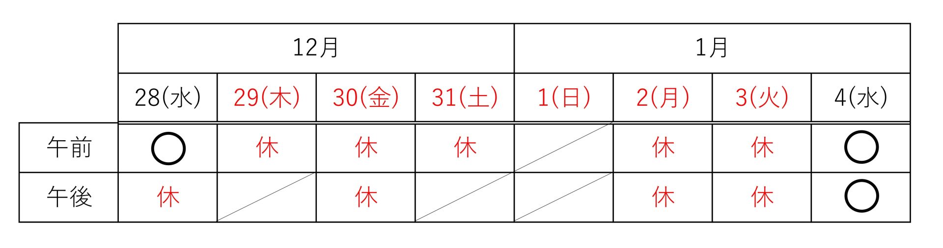 お知らせ news ホーム お知らせ 2022年度 年末年始 休診のお知らせ 2022年度 年末年始 休診のお知らせ 2022.11.22 一般・患者さん向け 年末年始の休診案内になります。 詳細については休診案内表をご確認下さい。 当院ご利用の患者様にはご迷惑をおかけしますが、何卒よろしくお願いいたします。 × 前の記事へ 一覧に戻る 次の記事へ